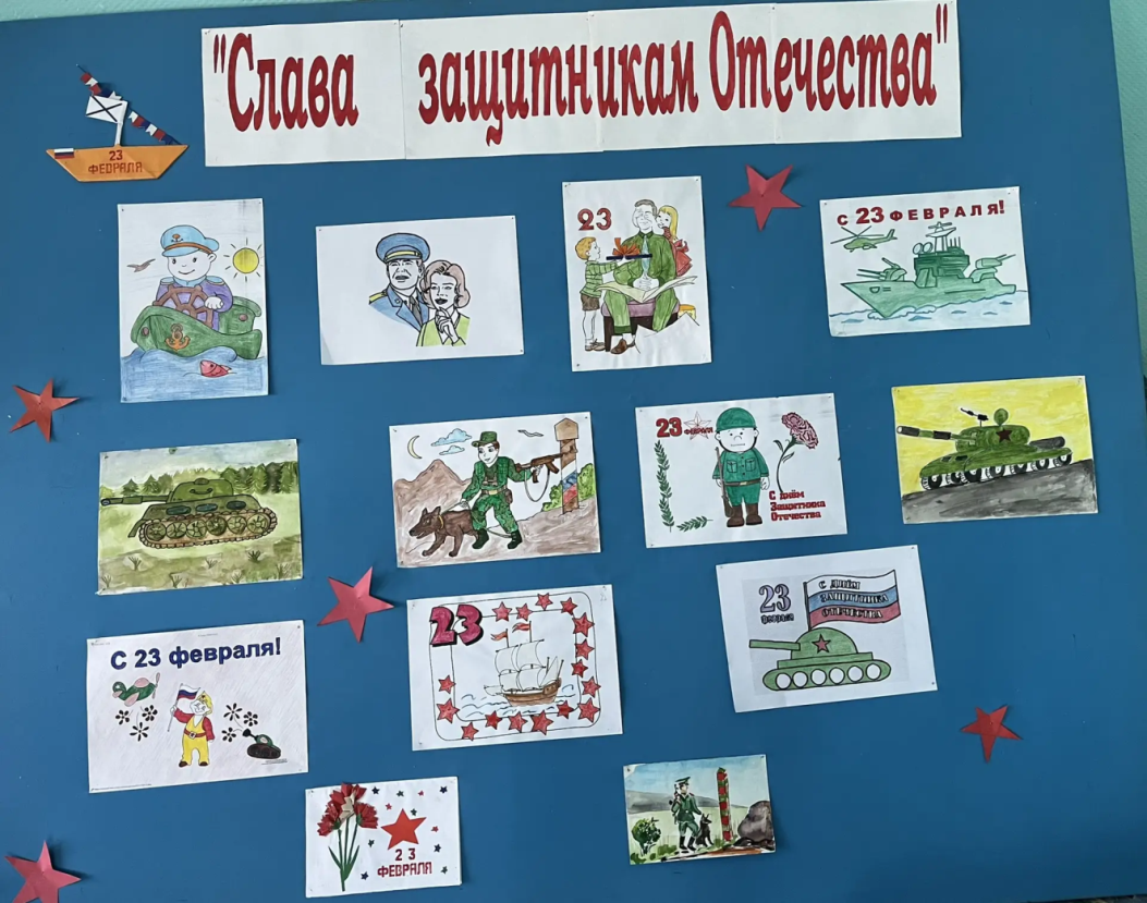 В Комплексном центре социального обслуживания населения проходит выставка рисунков «Слава защитникам Отечества!»