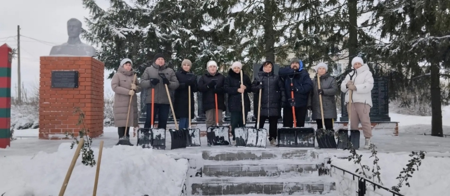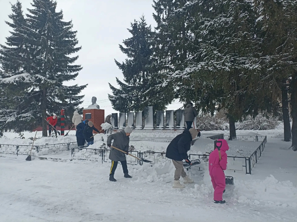 Общими усилиями очищены прилегающие территории и подшефные памятники от снега. Это не просто уборка, а дань уважения героям и нашей истории. Для нас важно, чтобы памятные места всегда были ухоженными, ведь они являются живым воплощением